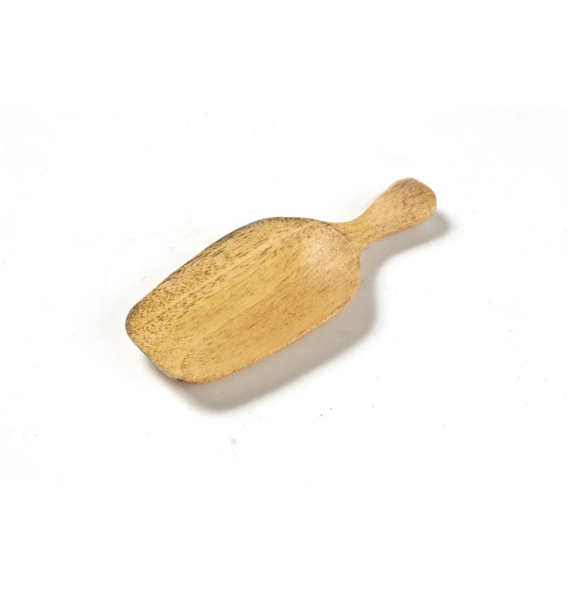 Colher produzida a partir de madeira de acácia de origem sustentável e tratada com um verniz seguro para alimentos.