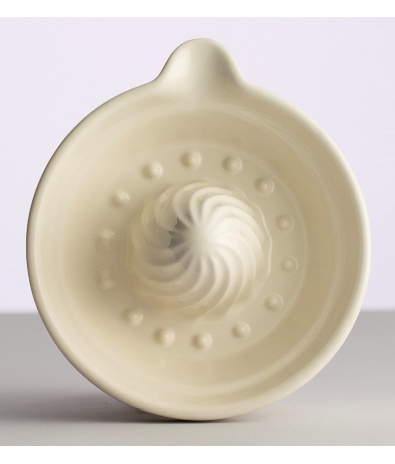 O espremedor de citrinos de ponta torcida tem um fosso profundo que evita derramamentos indesejados.