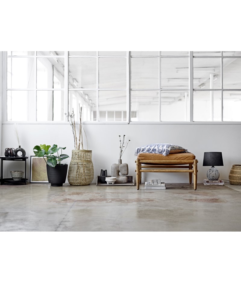 Floreira em metal preto, elegante e sofisticada, ideal para dar um toque de delicadeza à sua sala. Com uma textura natural, envolve harmoniosamente a planta.