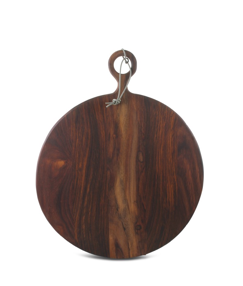Esta tábua tem uma elegante pulseira de couro que facilita para pendurar na parede da cozinha, tornando-a um óptimo acessório decorativo quando não estiver em uso.